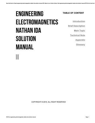 Read Online ENGINEERING ELECTROMAGNETICS NATHAN IDA SOLUTION MANUAL Epub
