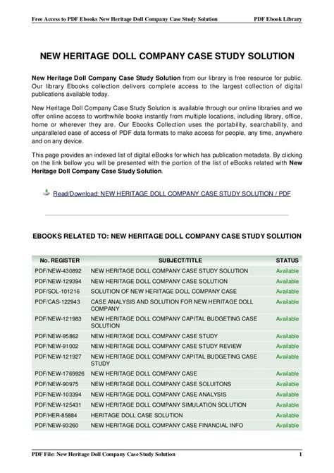 TGL - Download CASE ANALYSIS AND SOLUTION FOR NEW HERITAGE DOLL COMPANY Kobo Internet Archive